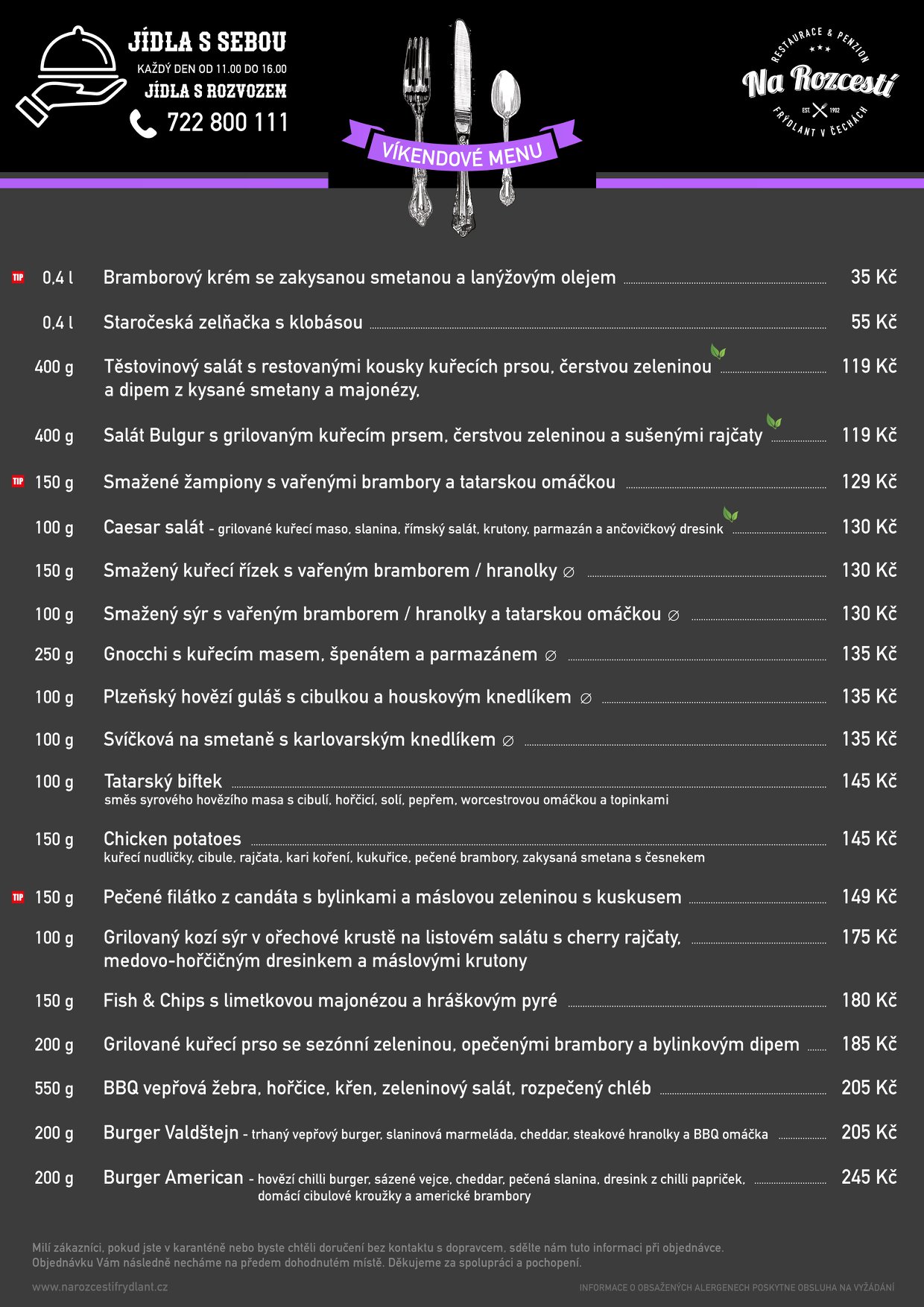 👨🍳 VÍKENDOVÉ MENU – sobota, neděle. 🌤🌤 Objednávky na 📞 722 800 111 nebo osobně. Sobota – výdej