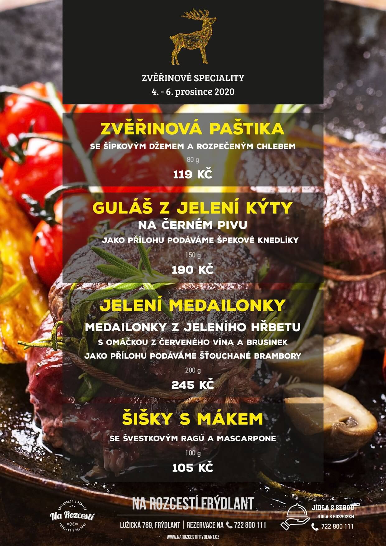 🦌 ZVĚŘINOVÉ SPECIALITY – od 4.12. do 6.12.2020