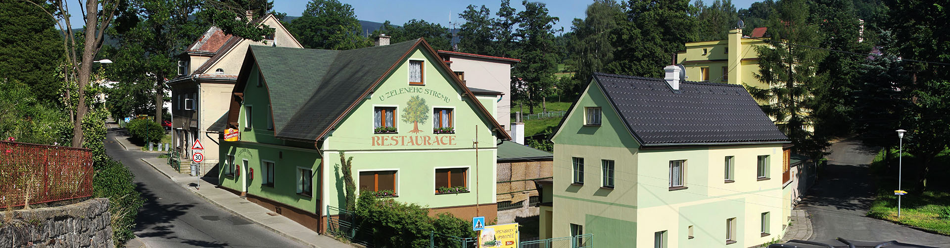 Restaurace U Zeleného stromu nabízí studené a teplé předkrmy, pokrmy z ryb a dietní pokrmy, speciality, minutkovou kuchyni z drůbežího a vepřového masa, bezmasá jídla, saláty, zmrzlinové poháry, moučníky, teplé nápoje, aperitivy, vína, likéry, destiláty, nealko nápoje a točené pivo Pillsner Urquel 12° a Gambrinus 11°. V létě možnost posezení na zahrádce spojené s grilováním…