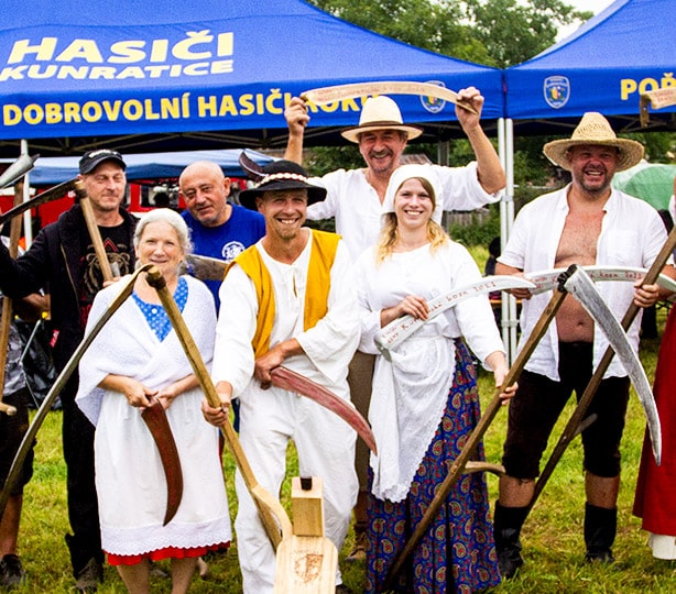 Kompletní fotogalerie zde: https://flic.kr/s/aHBqjASBwv Poslední srpnovou sobotu proběhl v Kunraticích 5. ročník soutěže v ručním kosení trávy – Kunratická kosa 2023. Letošního klání se zúčastnilo 11 soutěžících.Obecní louka mezi bytovkami a fotbalovým hřištěm...
