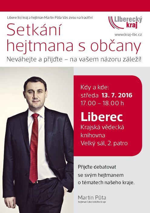 Hejtman Libereckého kraje Martin Půta svolal ustavující zasedání Zastupitelstva LK na úterý 3. listopadu od 14 hodin. Uskuteční se v zasedacím sále ve 3. patře Krajského úřadu Libereckého kraje, U Jezu 642/2a v Liberci. Veřejnost bude moci být přítomna v jiné...