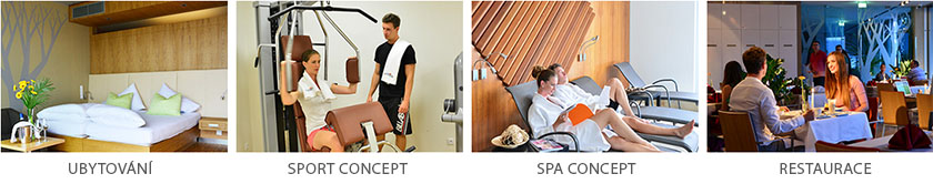 kapacita ubytování: 60 osob (16×1 lůž., 20×2 lůž., 1×3 lůž., 1 dvolůžkový apartmán), každý pokoj sociální zařízení, telefon, minibar + TV (za příplatek), vybrané pokoje – dostupný bezplatný internet.